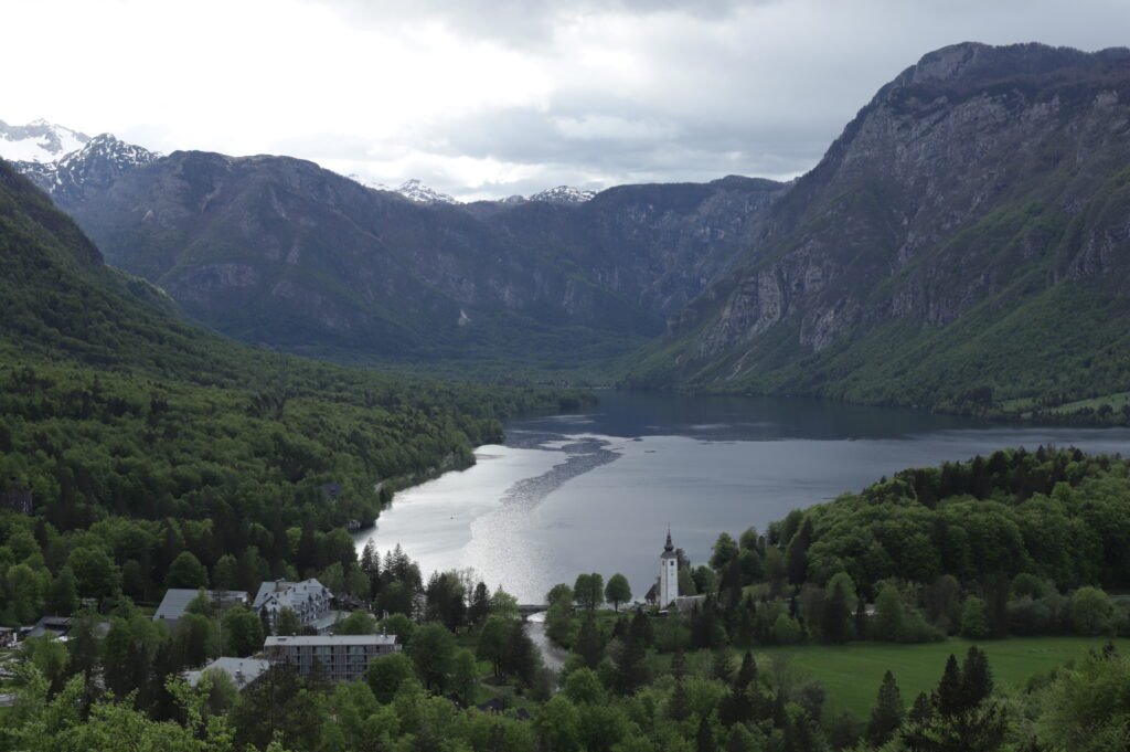 À la mi-journée, baignade possible à la plage de Mlino : pas la plus idyllique, mais ensoleillée et agréable. L’après-midi, prendre le bus au plus tard à 14h30 pour le lac de Bohinj, plus sauvage que Bled. Le sentier côté nord offre une atmosphère très nature, parfois entrecoupée d’averses mais avec des moments de lumière magnifiques. La montée au point de vue de Pec clôture parfaitement l’excursion, avant le dernier bus retour à Bled (18h45 – bien checker les horaires!).