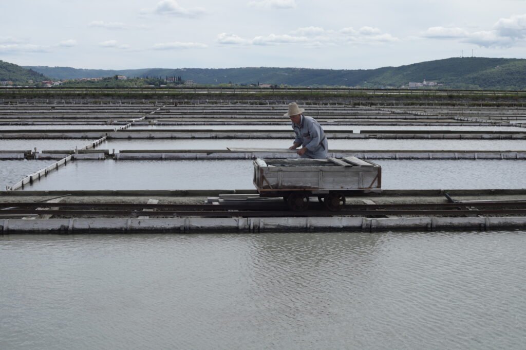 Premier arrêt : le Sečovlje Saltpans Nature Park, vaste zone de marais salants toujours en activité. La balade au milieu des bassins d’eau salée est une plongée dans l’histoire locale, avec parfois des flamants roses au loin. Depuis là, on peut pousser jusqu’à la frontière croate et passer un instant « de l’autre côté » juste pour le fun.